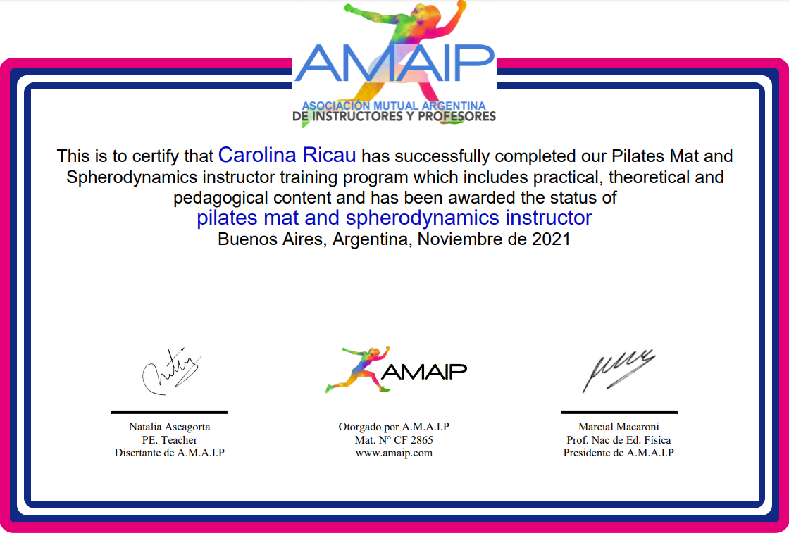 • Por años, la especialidad en AMAIP. Obtendrás los conocimientos esenciales del Método Pilates Mat (colchoneta), con las herramientas necesarias para que puedas planificar como un verdadero profesional, ahora en combinación con el mejor material de Esferodinamia. • Todo en una misma capacitación. • Si estabas esperando un momento para destacar como instructor/a del método, ¡Esta es tu oportunidad! • Te invito a ver el siguiente VIDEO EXPLICATIVO, donde podrás ver todos los detalles acerca del Instructorado, y luego seguir leyendo el temario. • Cualquier consulta estamos a disposición, bienvenidos a AMAIP.