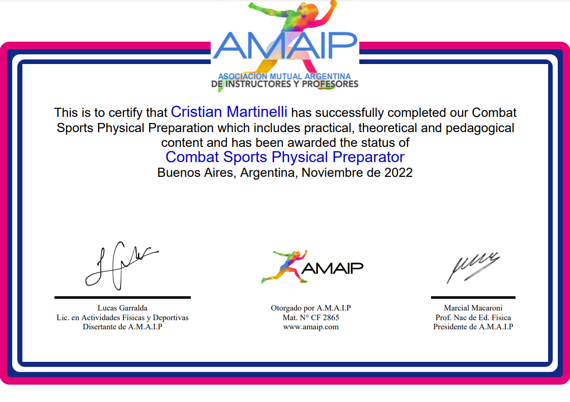 • El instructorado específico para el desarrollo deportivo y físico de tus alumnos. Desde la preparación general para el desarrollo de las capacidades físicas, hasta la preparación específica en deportes de combate. Con las herramientas necesarias para el entrenamiento deportivo, y para trasladar las técnicas específicas de estas disciplinas a cualquier clase. • Dictado por el Lic. en Actividades Físicas y Deportivas, Lucas Garralda, con trayectoria como entrenador de lucha olímpica en el CeNARD, y ex-integrante del seleccionado nacional de lucha olímpica (1992-2007). • Te invito a ver el Siguiente VIDEO EXPLICATIVO, donde podrás observar todos los detalles del Instructorado, y luego seguir leyendo el temario. • Cualquier consulta estamos a disposición, bienvenidos a AMAIP.