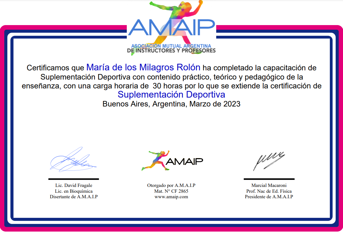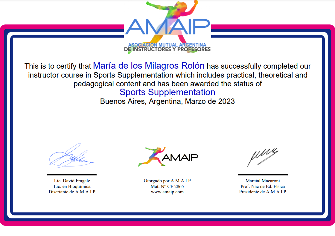 • De las formaciones más solicitadas, con contenidos avanzados. • Contarás con información CIENTÍFICA críticamente analizada para decidir si un paciente debe o puede consumir suplementos: con las HERRAMIENTAS para comprender los efectos biológicos de los distintos tipos de suplementos deportivos según la evidencia científica disponible hasta la fecha. • En el siguiente VIDEO EXPLICATIVO, verás todos los detalles acerca de los 2 meses de cursada, y luego podrás continuar viendo el TEMARIO, las certificaciones oficiales, junto al asesoramiento de nuestro equipo en todo momento. • ¡Bienvenidos a AMAIP!